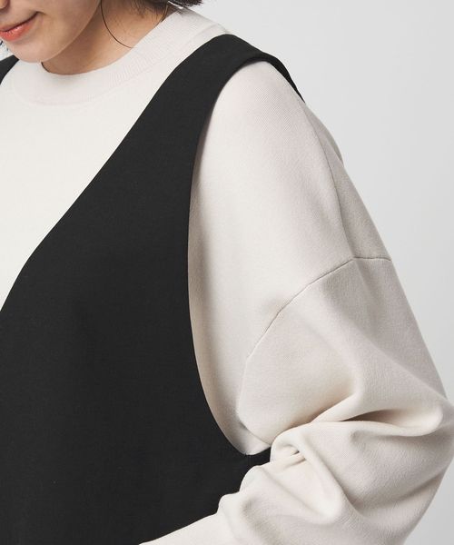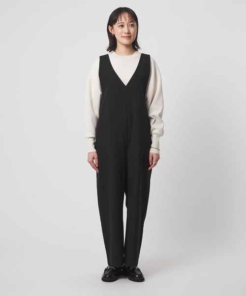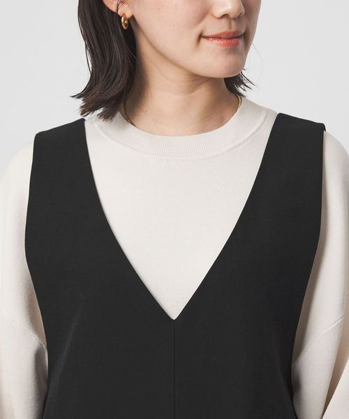 深めのVネックデザインで、インナーとのレイヤードを楽しめるのもポイント。