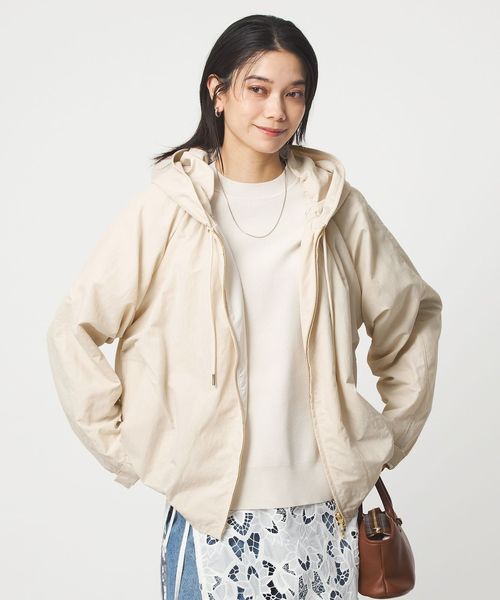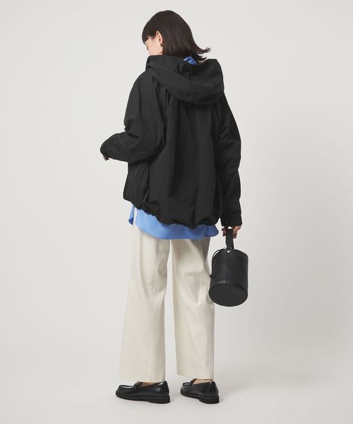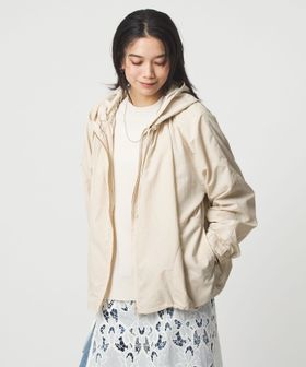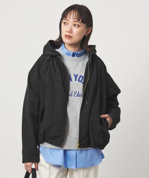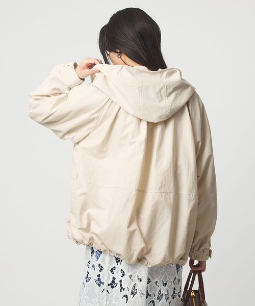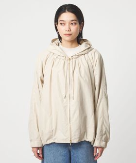 立体感のあるギャザーとゆったりとしたシルエットが魅力のフードブルゾン。
