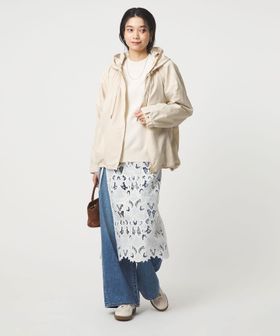 ギャザーが映える大人フェミニンなフードブルゾン