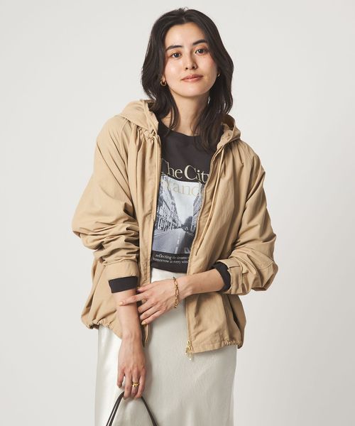 立体感のあるギャザーとゆったりとしたシルエットが魅力のフードブルゾン。