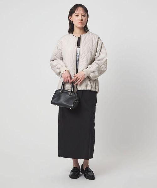 さまざまなネックラインのアイテムと合わせやすい、ノーカラーデザインで仕上げました。