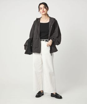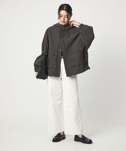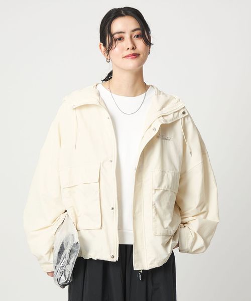 スカートやワンピースに羽織れば、スポーティさを抑えたフェミニンスタイルに。