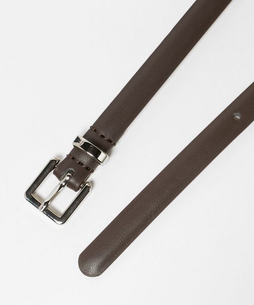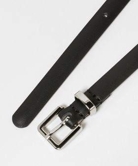 スクエア型のバックルがシャープな印象のベルト。
