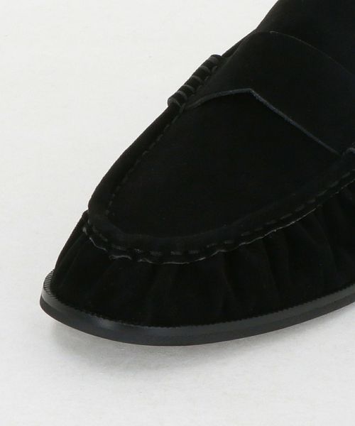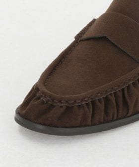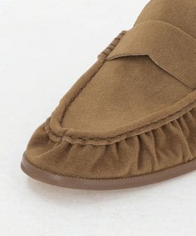 モカシン縫い部分にギャザーを寄せたデザインのローファー。