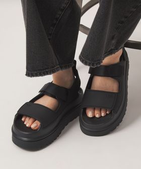 面ファスナー仕様で調節可能な軽量サンダル、ゴールデングロウ。