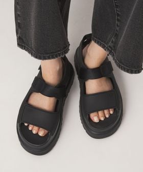 プラットフォームソールとグリップ力のあるフットベッドで仕上げたサンダルは、