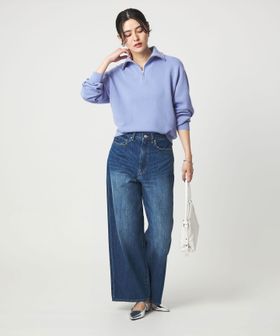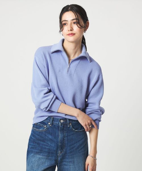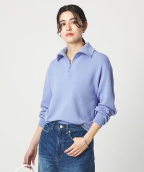 襟元の開閉によって表情を変えられる、ハーフジップのプルオーバー。