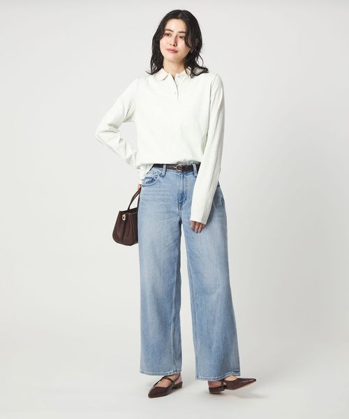 襟付きトップスを合わせた、旬なスタイリングがおすすめです。