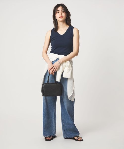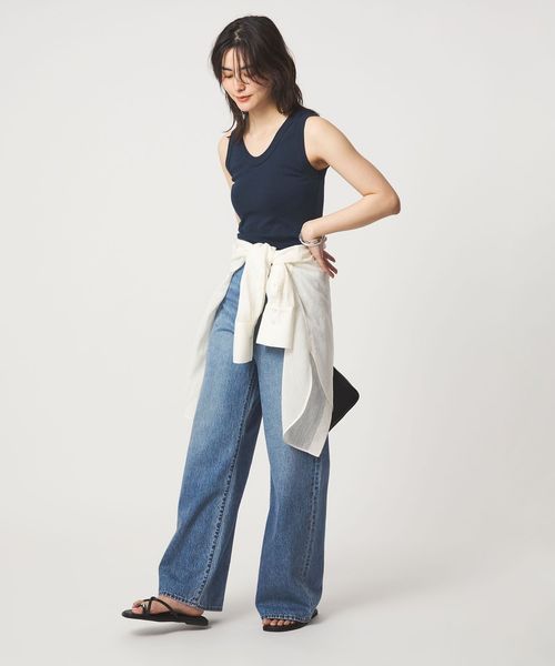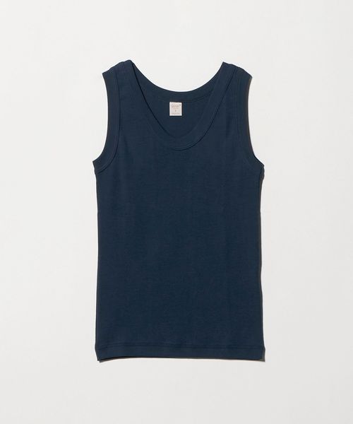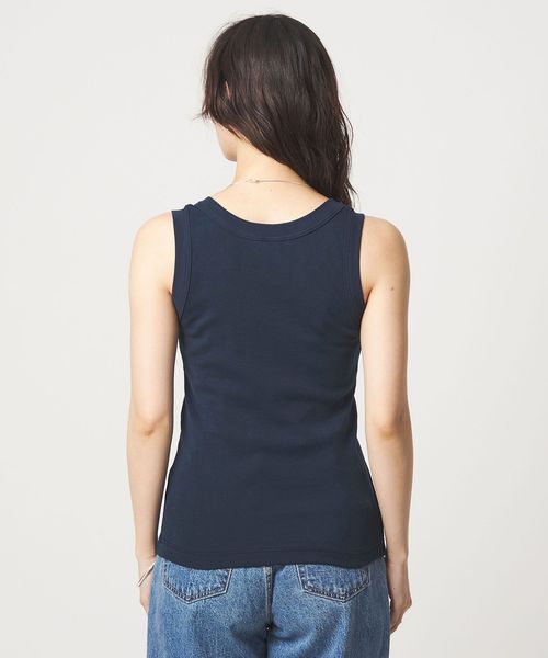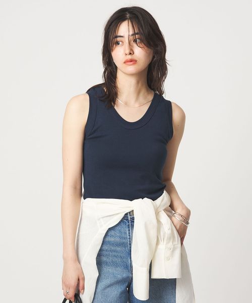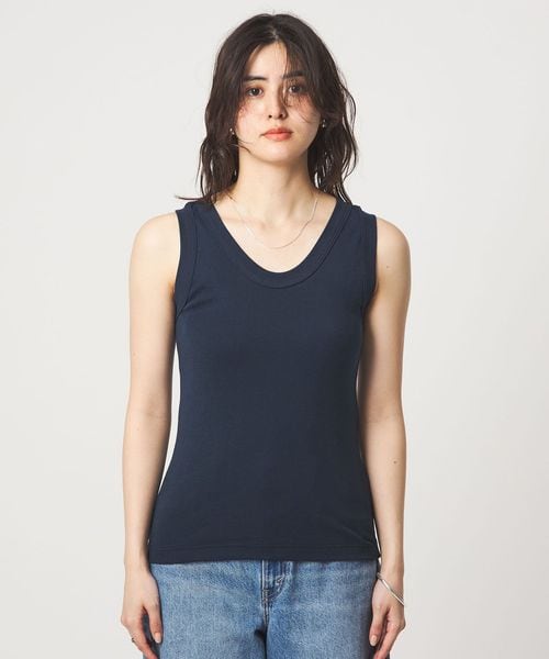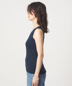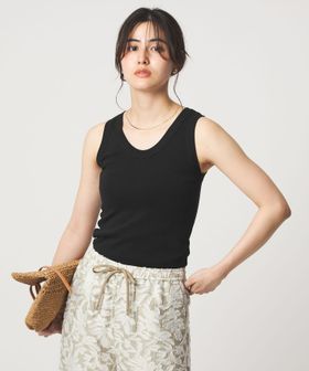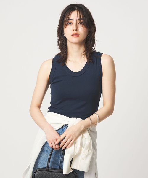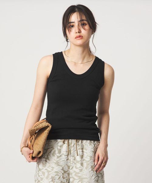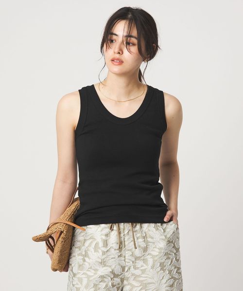 深すぎない胸元や着丈のバランスなど絶妙なサイズ感のタンクトップ。