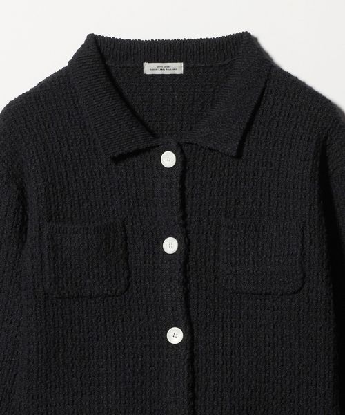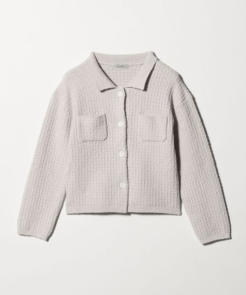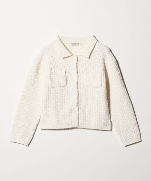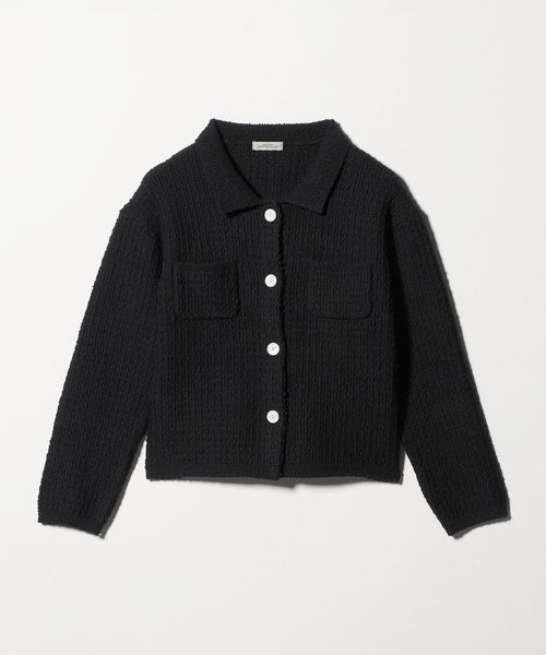 表情のあるブークレ素材で存在感のあるポロニットカーディガンです。