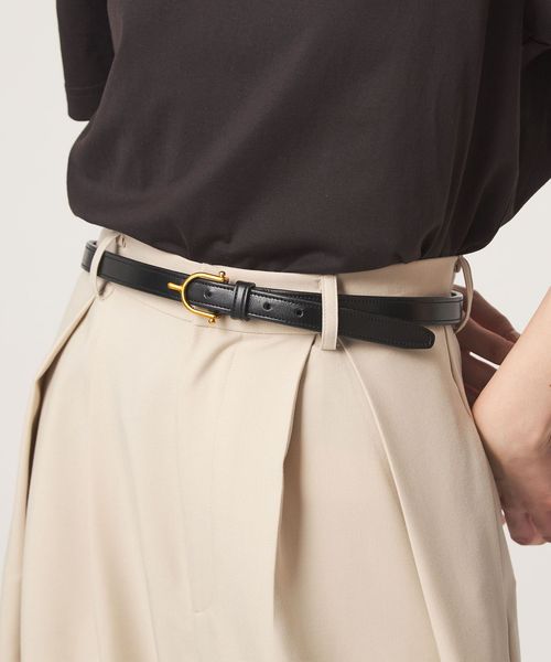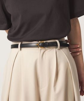 シンプルながらもTORY LEATHERらしい存在感のあるバックルが目をひくベルト。