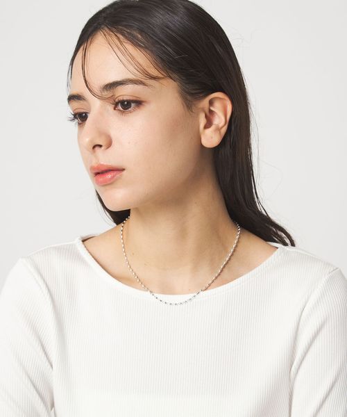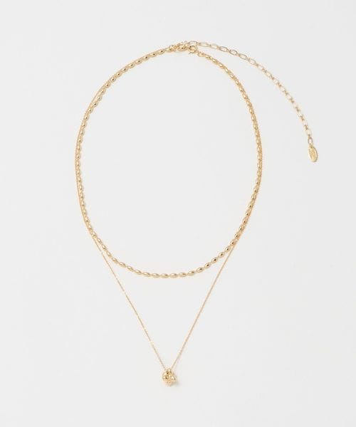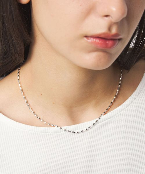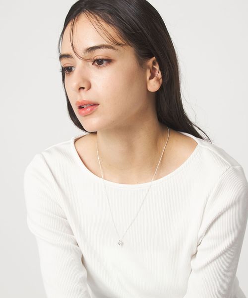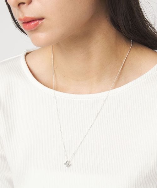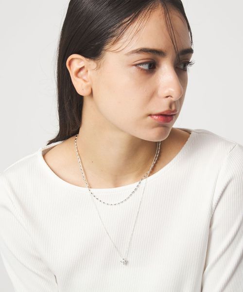 あまり見ない新鮮なフォルムが胸元で華やかな存在感を発揮するネックレス。