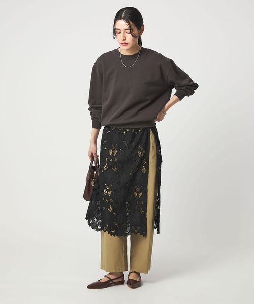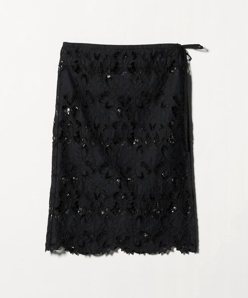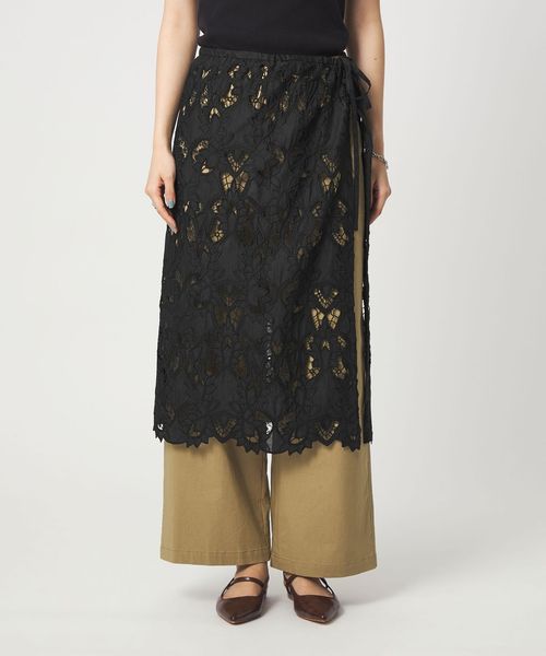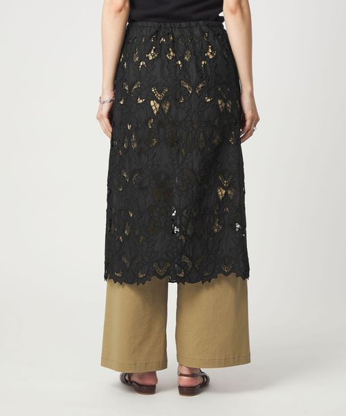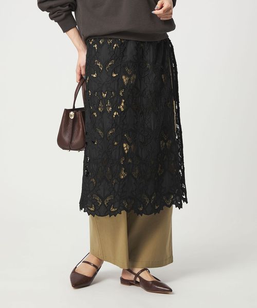 大きめの柄で甘すぎないレース素材が目を惹くスカート。