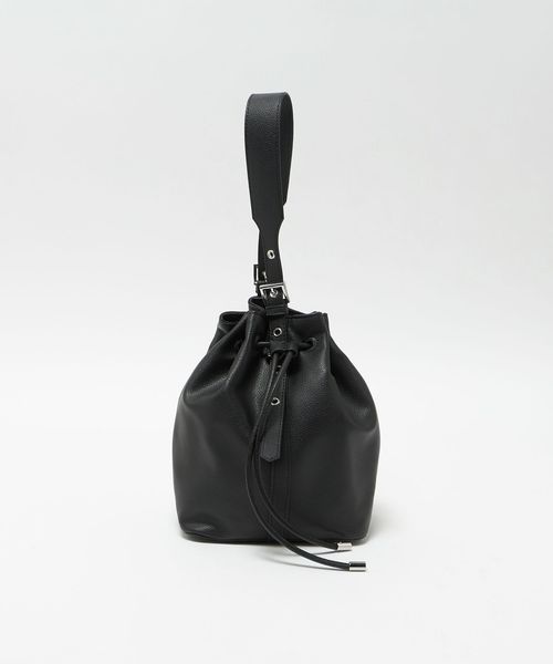きれいめカジュアルからエッジの効いた辛口スタイルまで、幅広く馴染むドローストリングバッグ。