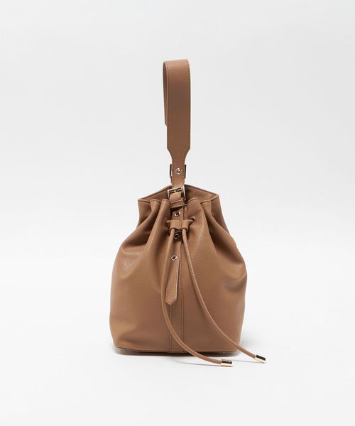 きれいめカジュアルからエッジの効いた辛口スタイルまで、幅広く馴染むドローストリングバッグ。