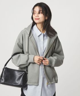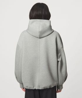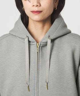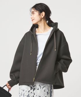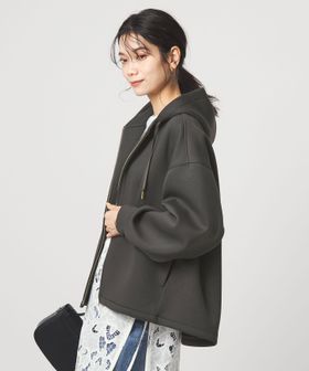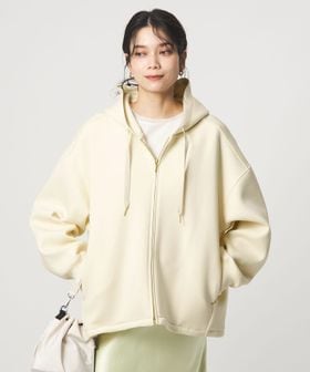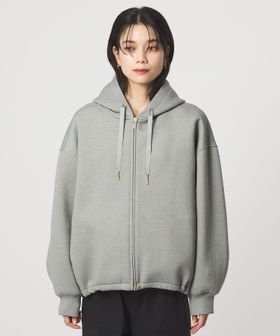 ふっくらとしたハリ感が魅力のダンボール素材のジップアップパーカー。