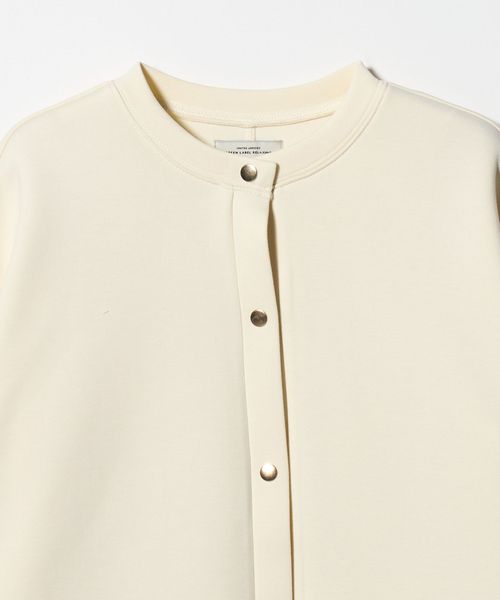 クルーネックのシンプルなデザインにスナップボタンをあしらい、上品なアクセントをプラスしました。