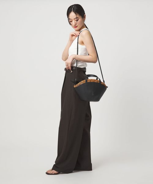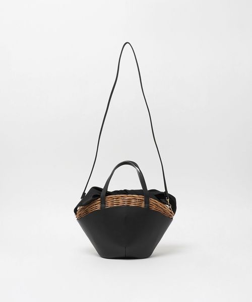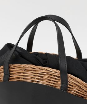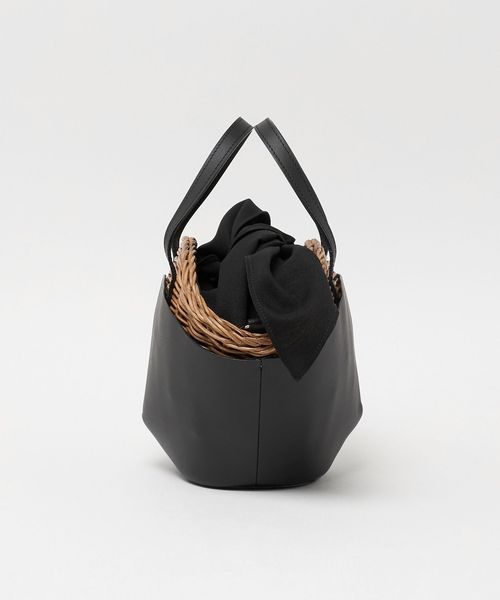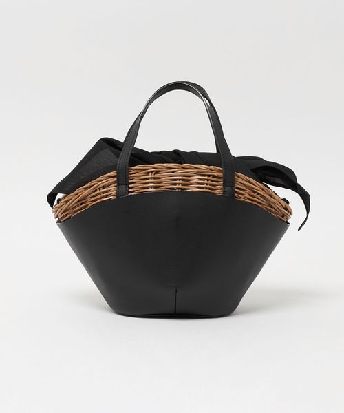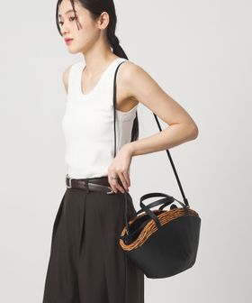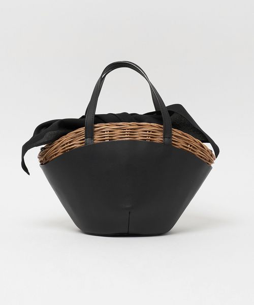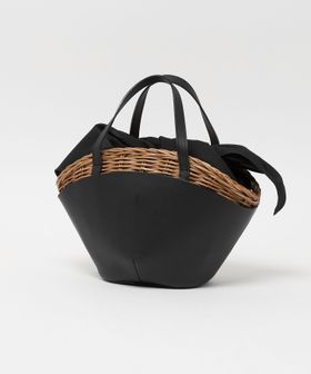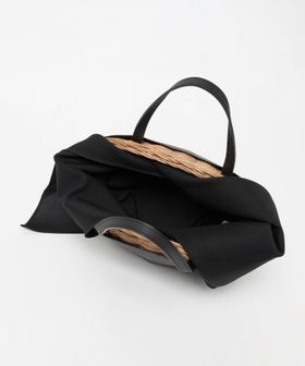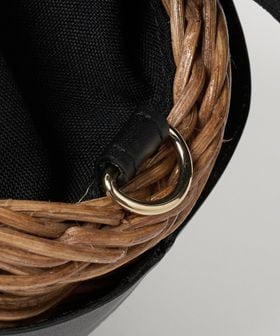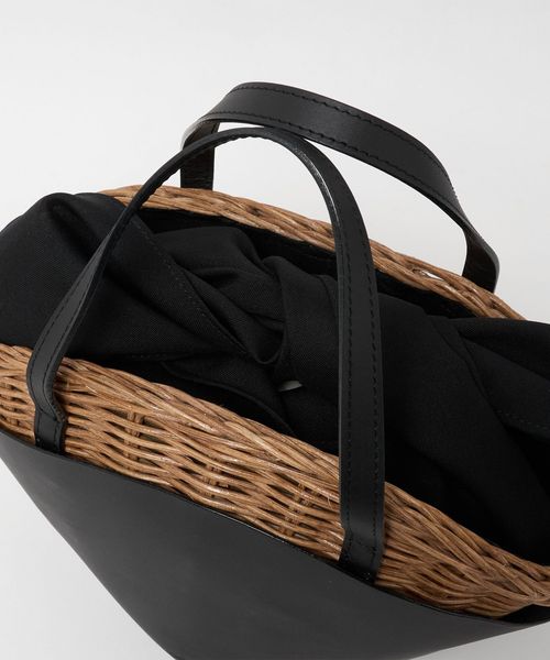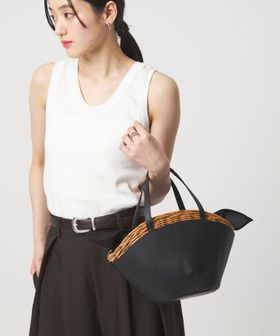 舟型フォルムに素材コンビが印象的なかごバッグ。