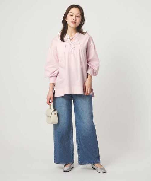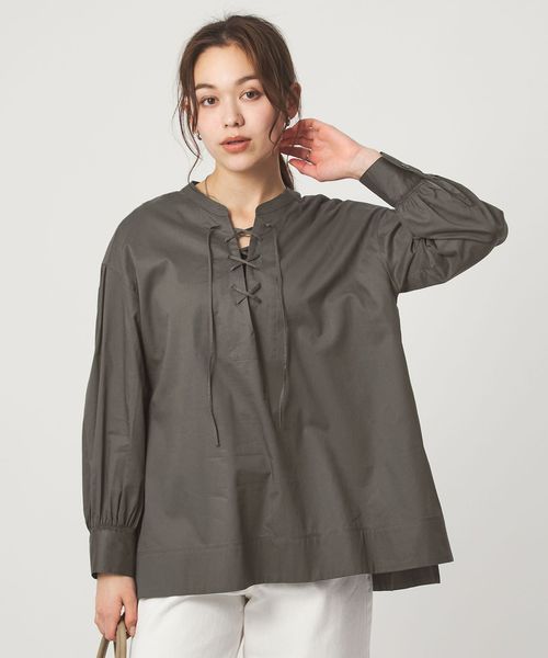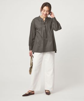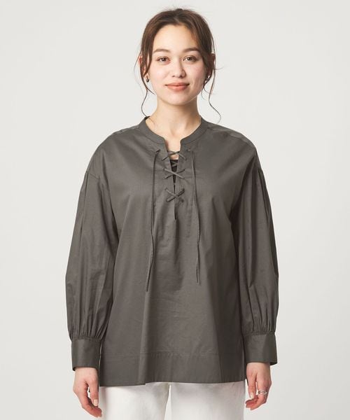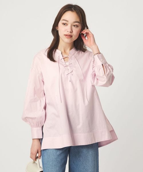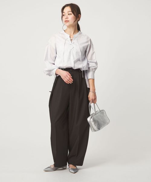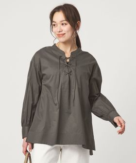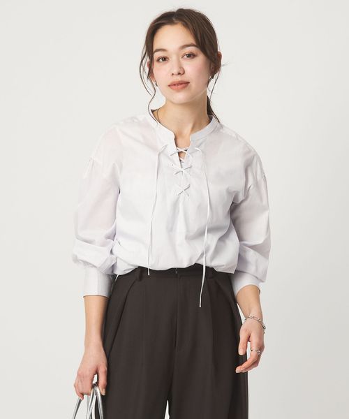 ボリュームスリーブ×レースアップデザインで魅せる着映えブラウス