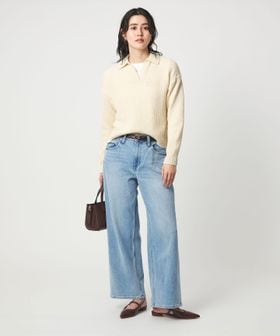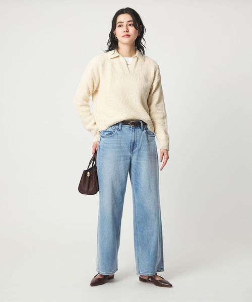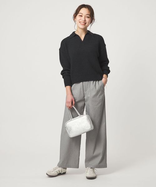 ワイドパンツと合わせると、カジュアルながら上品なムードに。