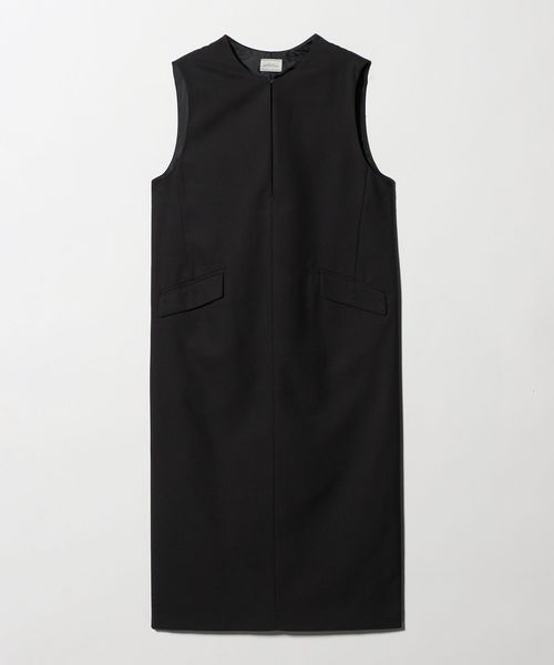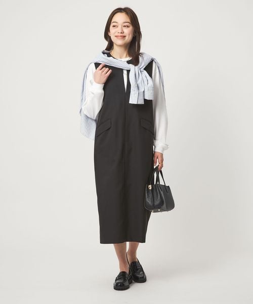 顔まわりをすっきり見せてくれる、深めのキーネックがポイントのジャンスカ。
