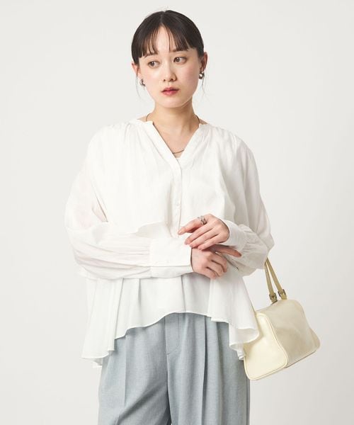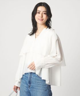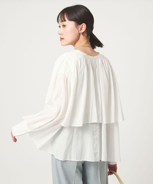 [size SHORTあり]ボイル レイヤー ギャザー ブラウス