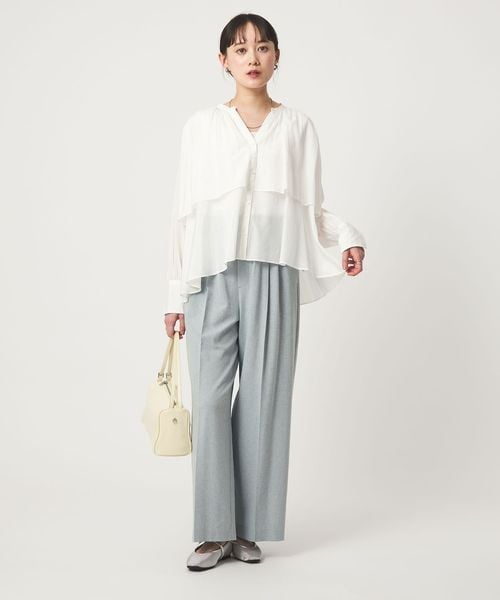たっぷりと寄せたギャザーを二段に重ねた、着映えブラウス。