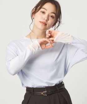 袖口にチュール素材をドッキングすることで、抜け感のある印象に仕上げたカットソー。