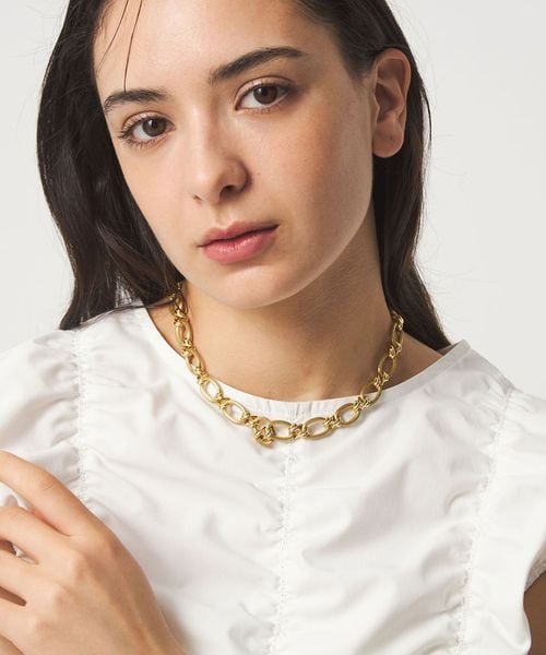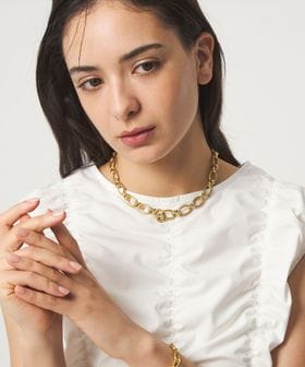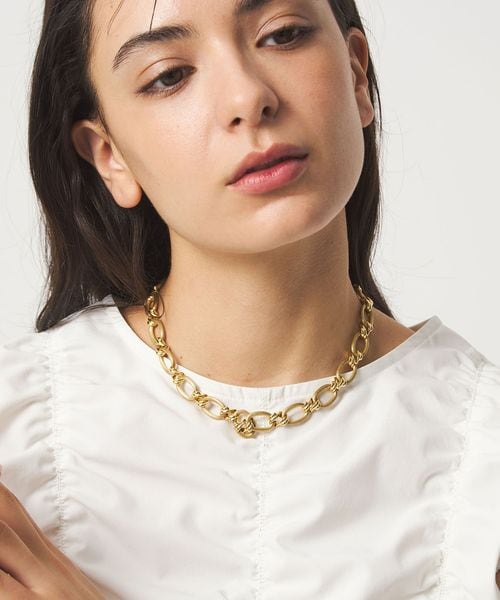 視線を惹きつけるボリュームチェーンのネックレス。