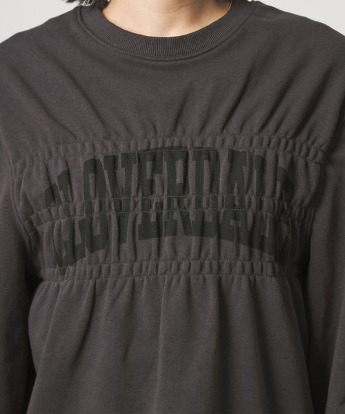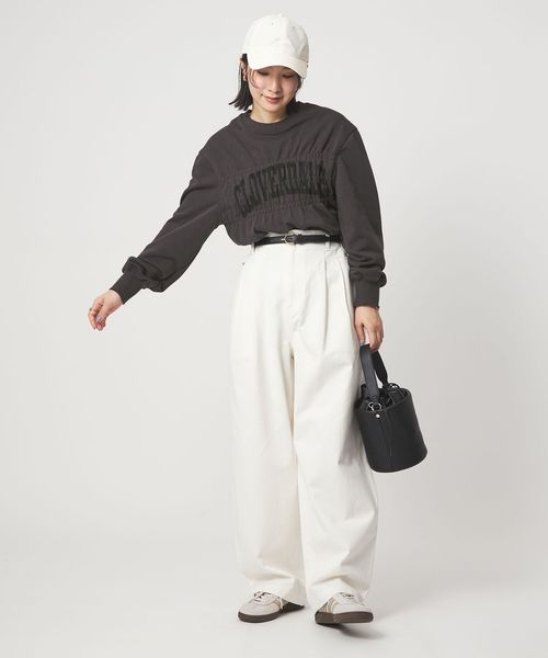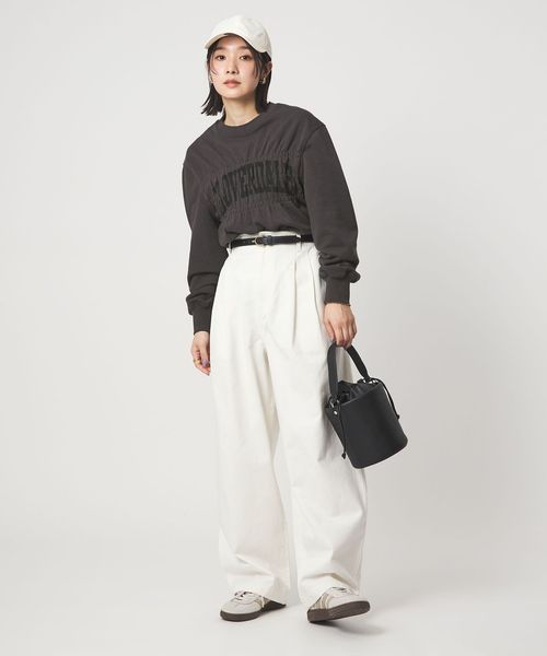 いつものロゴスウェットもシャーリングのデザインがアクセントになり、こなれた雰囲気に◎