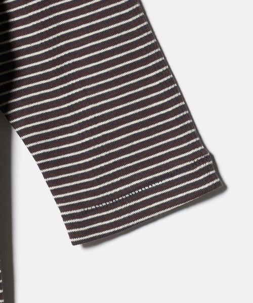 着回しのきく無地のホワイト・ブラックカラーと、ボーダーが目を惹くダークブラウン・レッドカラーの4色をご用意しました。