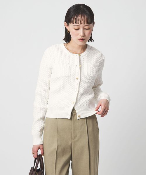 ケーブル編みが目を惹くニットカーディガン