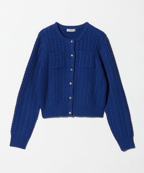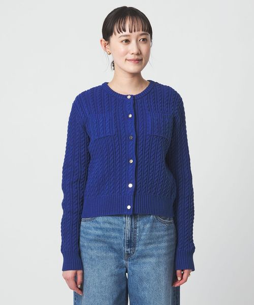目が立った存在感のあるケーブル編みが魅力のカーディガン。