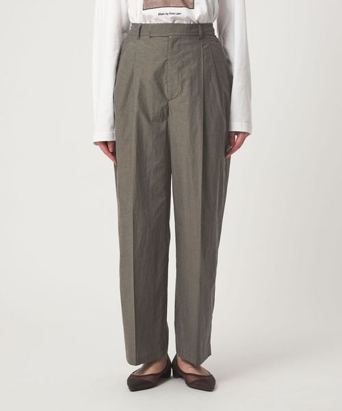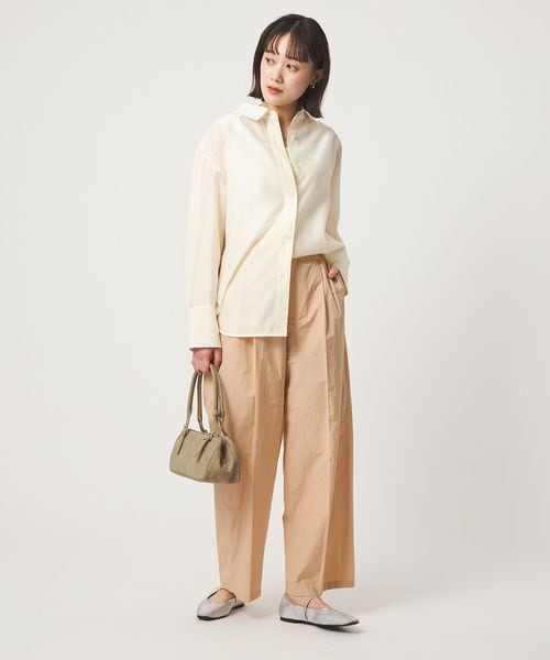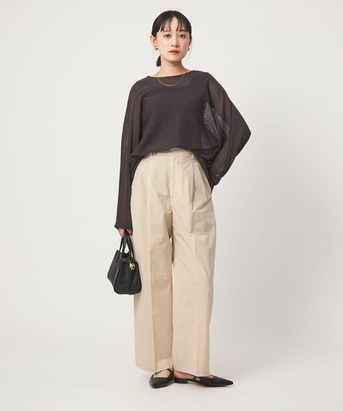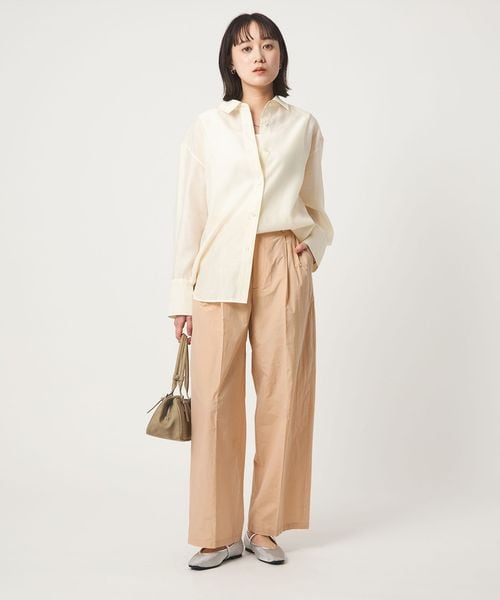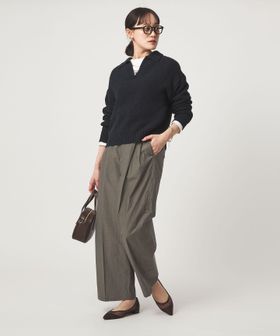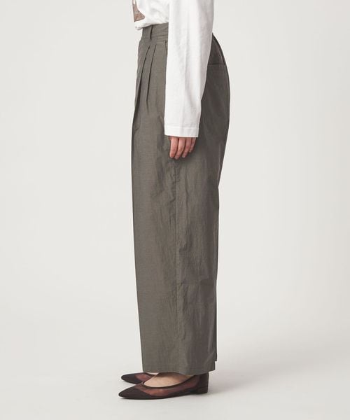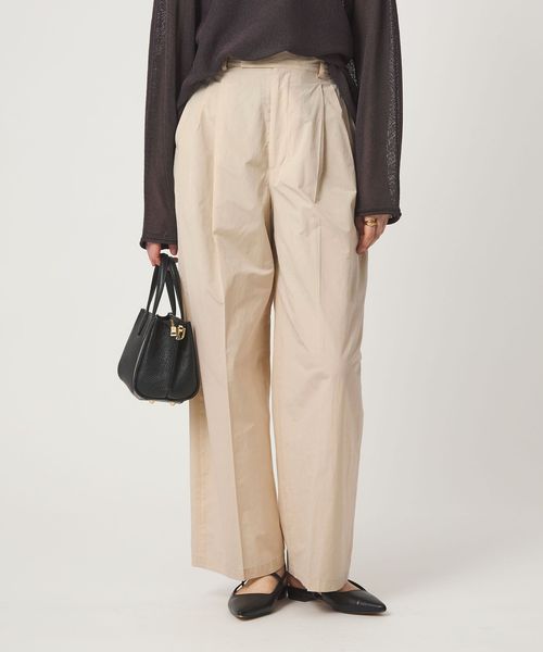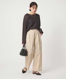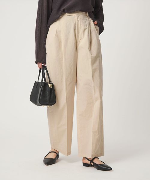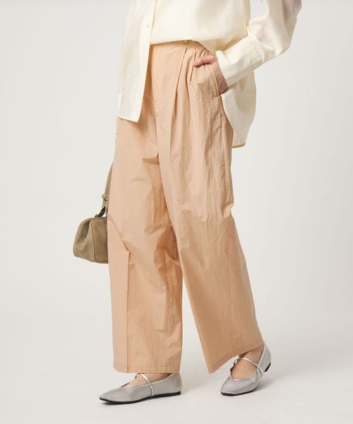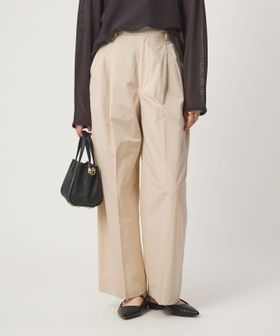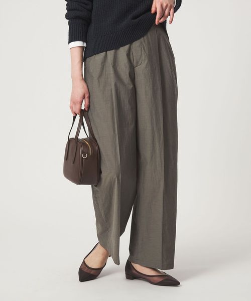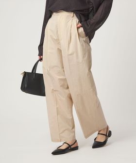 ほどよいハリ感のある素材を使用したワイドパンツ。