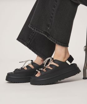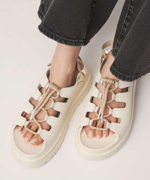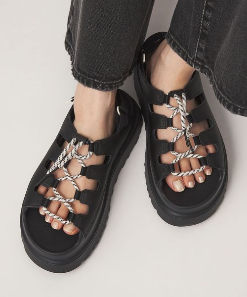 バックヒールストラップとレースアップトグルプルのデザインとなっており、調節可能なので、好みのフィット感で履くことができます。