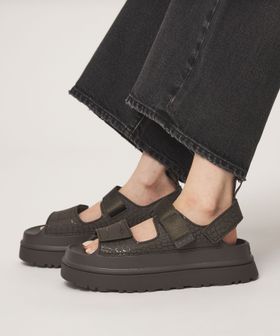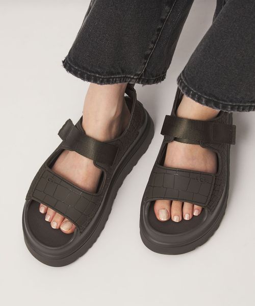 面ファスナー仕様で調節可能な軽量サンダル、ゴールデングロウ。