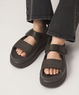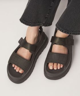 プラットフォームソールとグリップ力のあるフットベッドで仕上げたサンダルは、