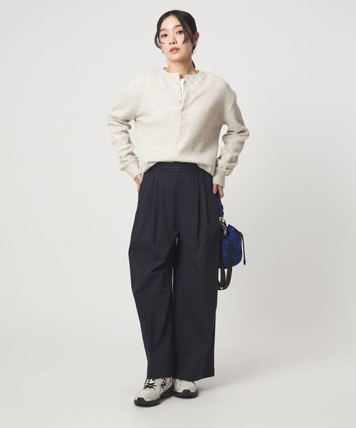 大人カジュアルスタイルにぴったりのヘンリーネックワッフルロンT。