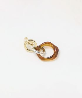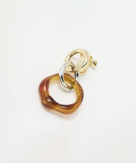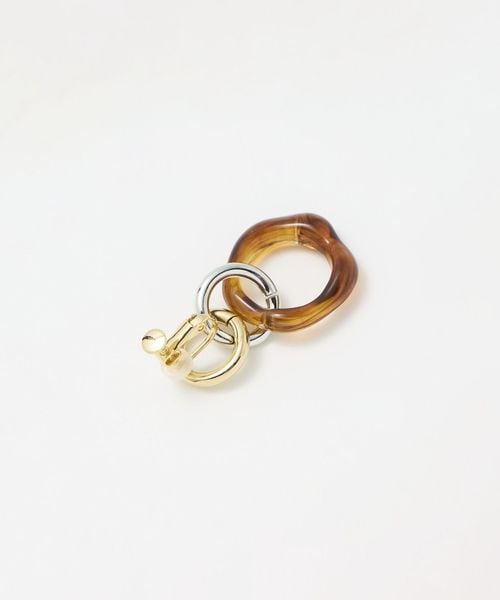 カラーや素材の異なるリングを組み合わせた、抜け感のあるデザインのイヤリング。