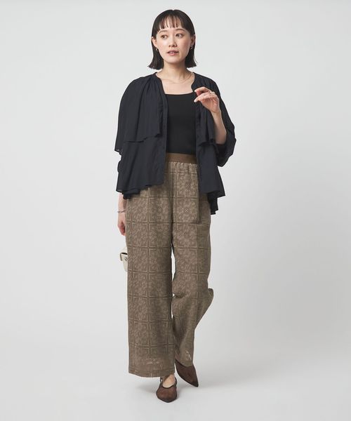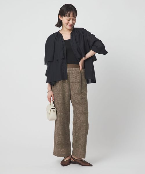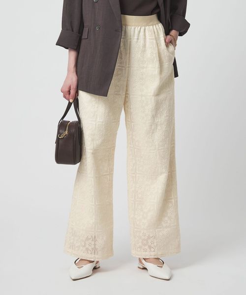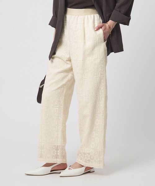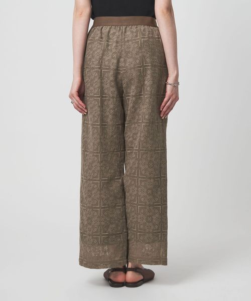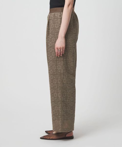 存在感のある刺繍柄が、一枚でコーディネートを華やかに見せてくれるパンツ。