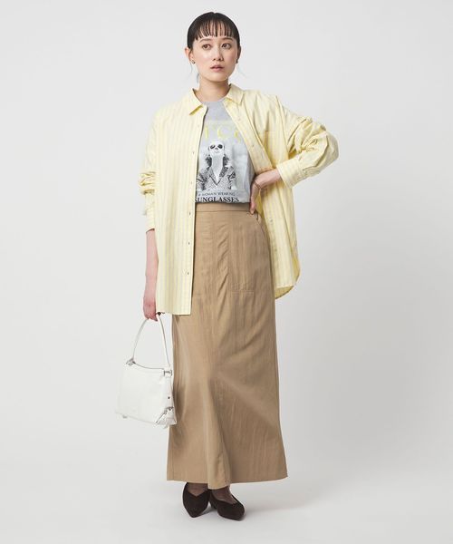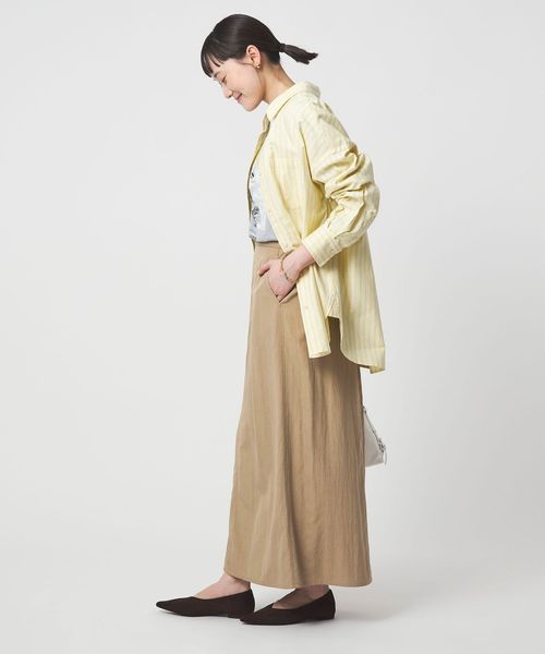 コンパクトなトップスを合わせれば、Aラインをより引き立てたバランスの良いスタイルに。