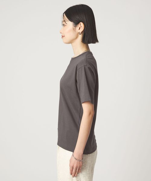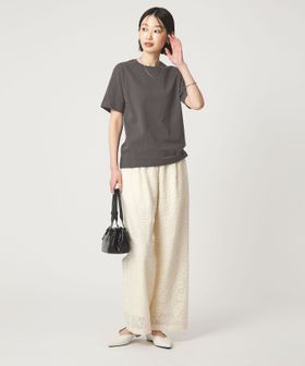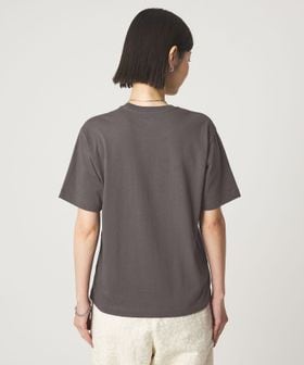 身頃の脇に縫い目がない丸胴仕様で、首まわりはすっきり見えするコバステッチに。