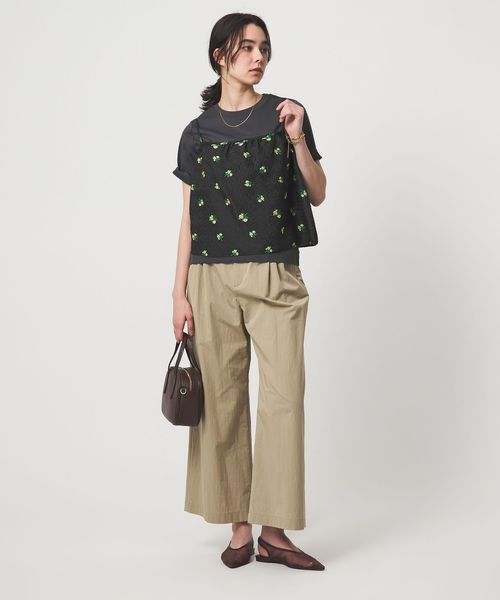 Tシャツやリブトップスに重ねるだけで軽やかなスタイルに。