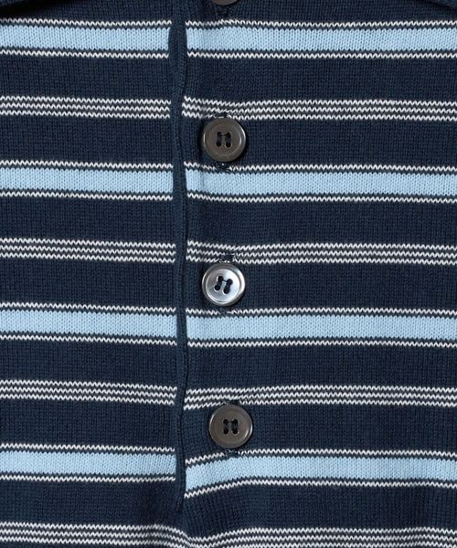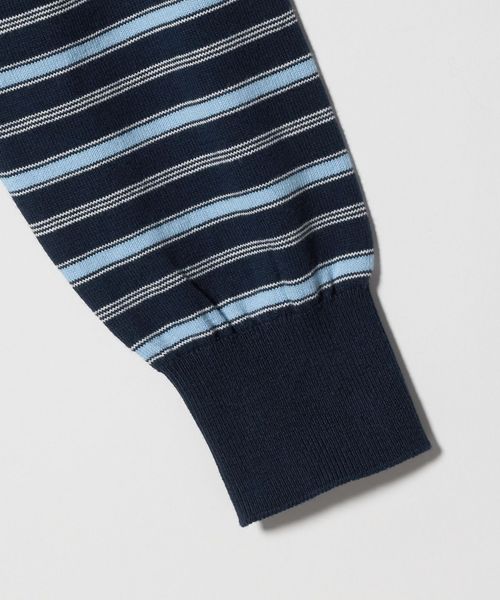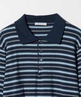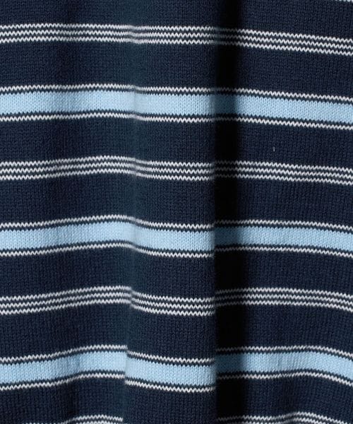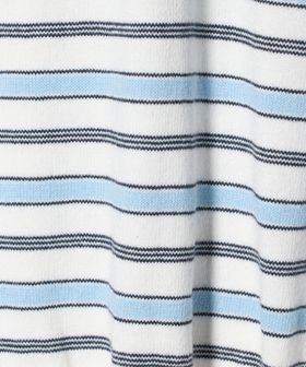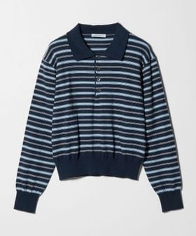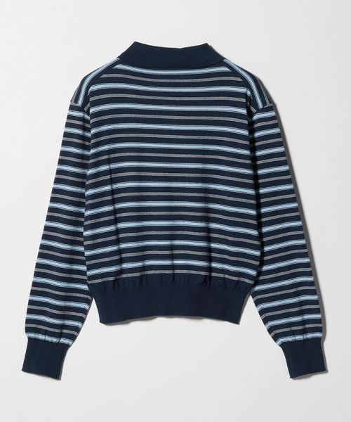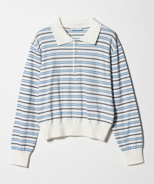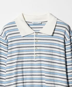 水色をポイントにしたランダムストライプが涼しげな印象の襟付きトップスです。