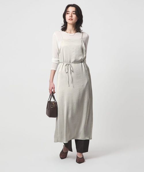 ウエストについている同素材の紐を軽く結んでブラウジングをすることで、