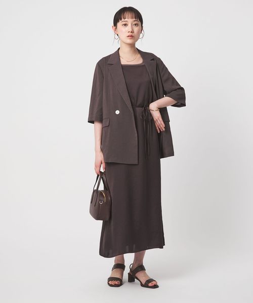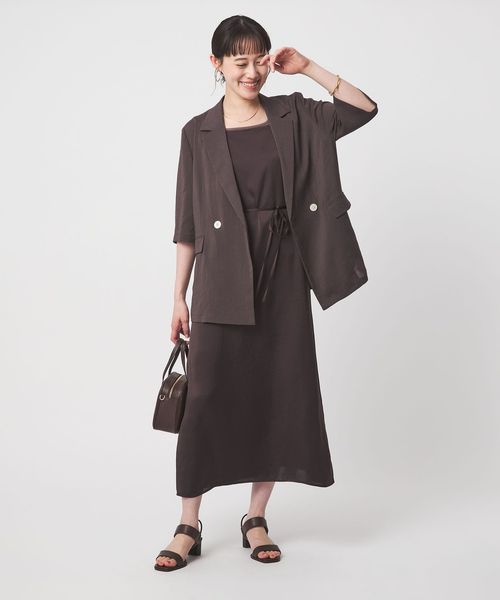 すっきりとしたナローフレアシルエットでサマ見えする一着です。