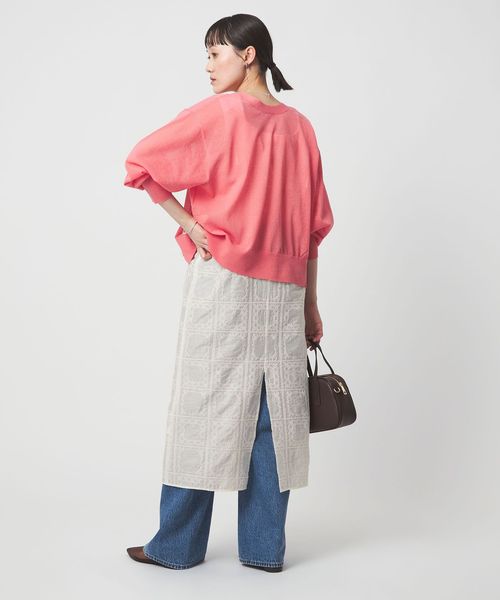 スクエア柄の刺繍で表情のあるデザインに。