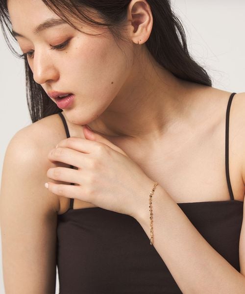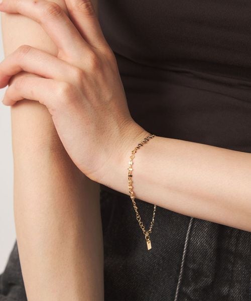 一見シンプルながらも、特徴のあるチェーンのデザインが目をひくブレスレット。