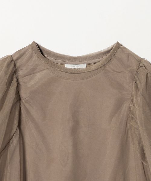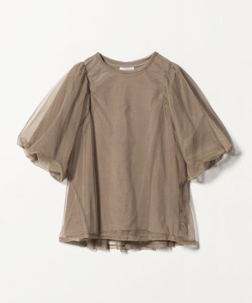 カットソーにチュールを重ねたニュアンスたっぷりのレイヤードトップス。