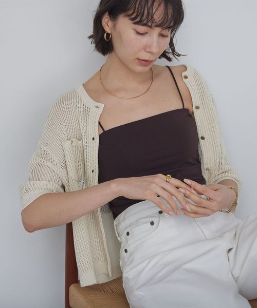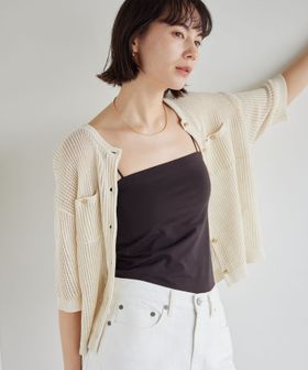 メッシュやシアートップスのインナーとしても重宝します。